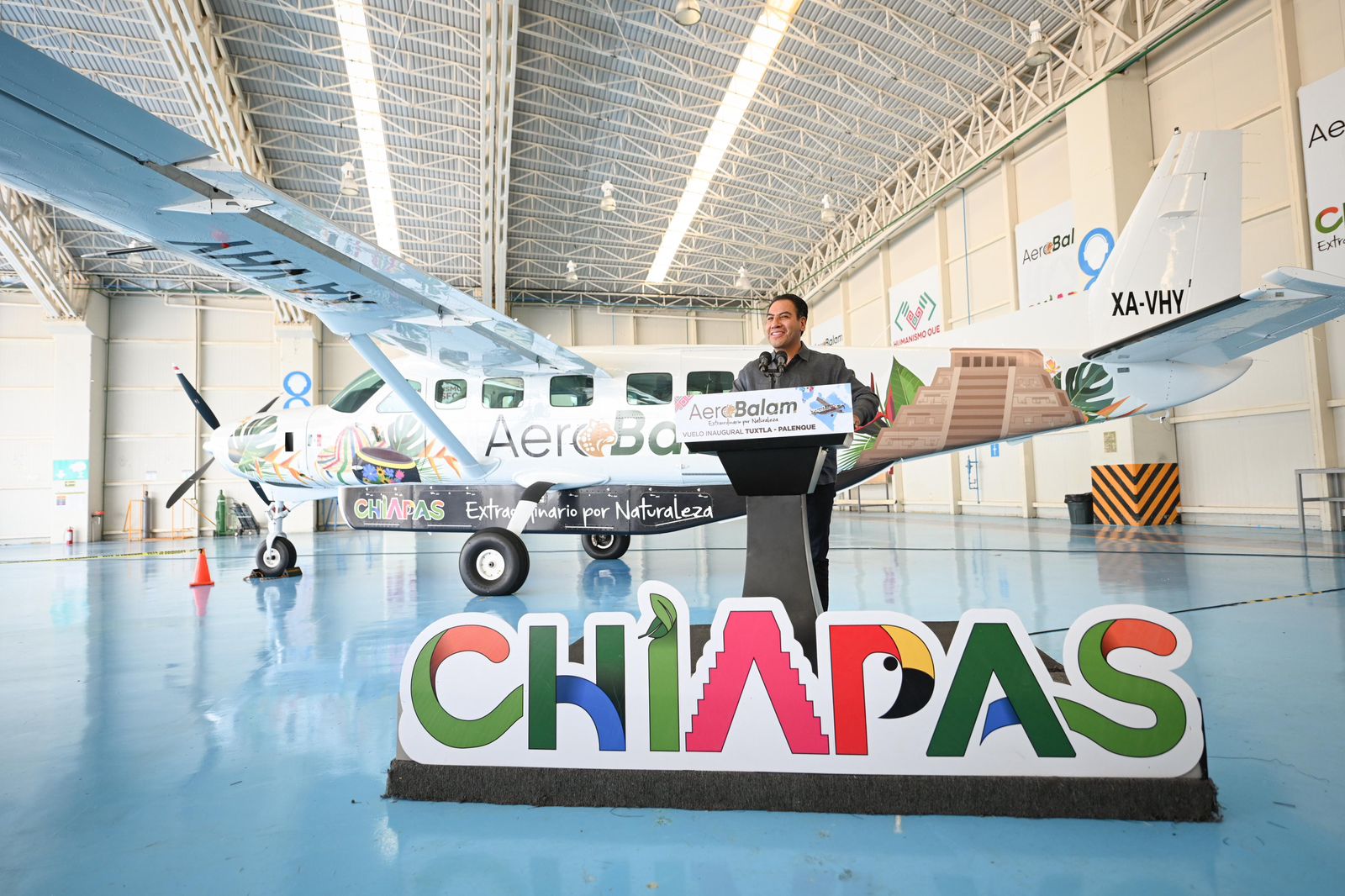 El director del Grupo Aeroportuario de Chiapas, Antonio Noguera Zurita, reconoció al gobernador por su impulso a la aviación como herramienta estratégica para el desarrollo del estado, al fortalecer el comercio, la inversión y el turismo, fomentar la integración social y, sobre todo, contribuir a la unión de las familias chiapanecas.