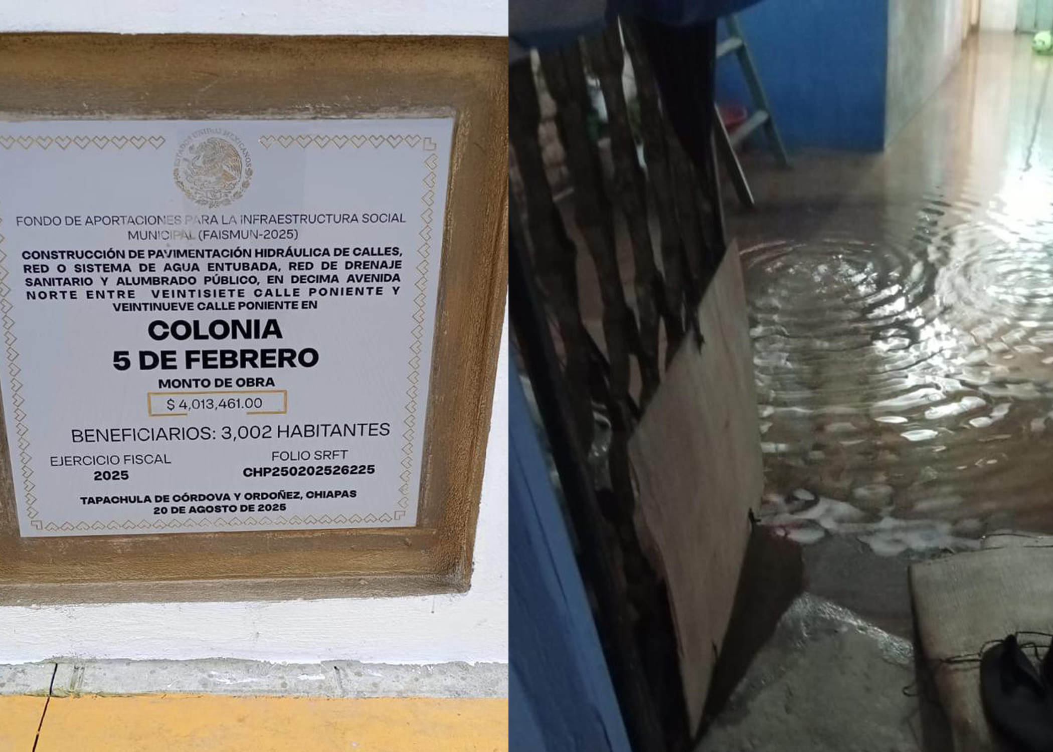 Julio Arturo Ortiz Sánchez en representación de los habitantes de la colonia 5º de Febrero, explicó que desde que se inauguró dicho tramo vial, ya se van inundando en cuatro ocasiones. Situación que asegura antes no se daba, por lo que están pidiendo al Presidente Municipal morenista, Melgar Bravo que se vuelva a realizar la obra.