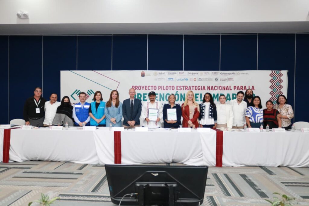 En el evento estuvieron presentes el coordinador de Acción Comunitaria y Gestión Territorial de los Servicios Públicos de Salud IMSS Bienestar, Nemer Alexander Maime S- Henkel; el representante en México del Fondo de Población de las Naciones Unidas, Anders Thomsen; y la secretaria ejecutiva del Sistema Nacional de Protección Integral de Niñas, Niños y Adolescentes, Lorena Villavicencio Ayala.