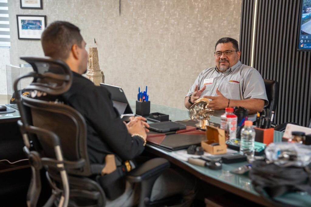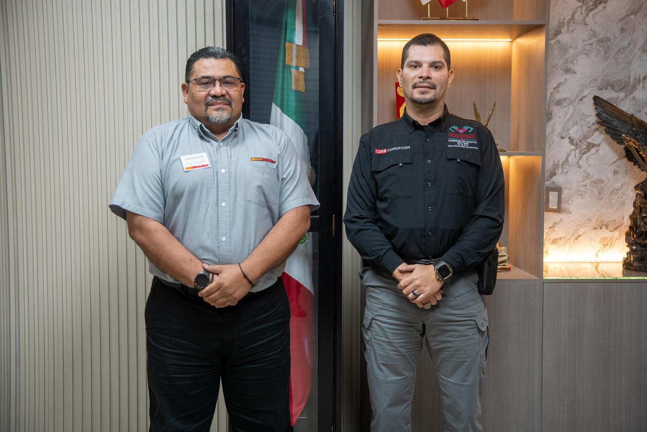 Tuxtla Gutiérrez, Chiapas; 11 de marzo de 2026.- El secretario de Seguridad del Pueblo,Óscar Alberto Aparicio Avedaño, sostuvo una reunión de trabajo con el gerente dePrevención de Pérdidas de AutoZone, Ramón Rejón Jiménez, con el objetivo de fortalecerlos lazos de comunicación y coordinación en las acciones operativas de prevención yatención de conductas delictivas.