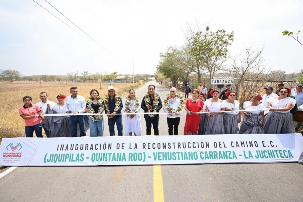 Asimismo, inauguró el tramo E.C. (Jiquipilas–Quintana Roo)–Venustiano Carranza–La Juchiteca, en el municipio de Jiquipilas, donde se destinaron más de 36 millones de pesos para favorecer a alrededor de 41 mil personas.
